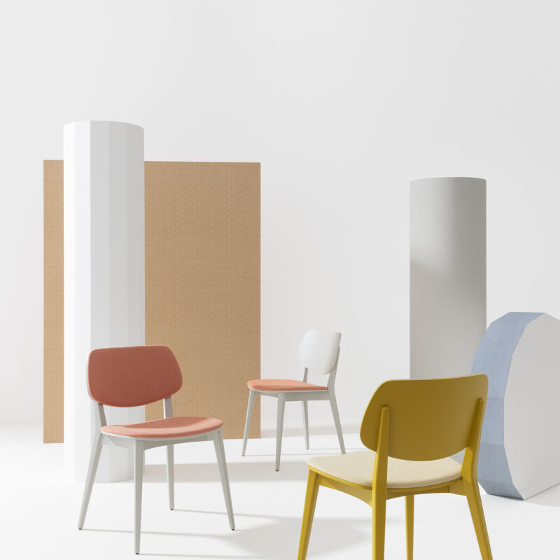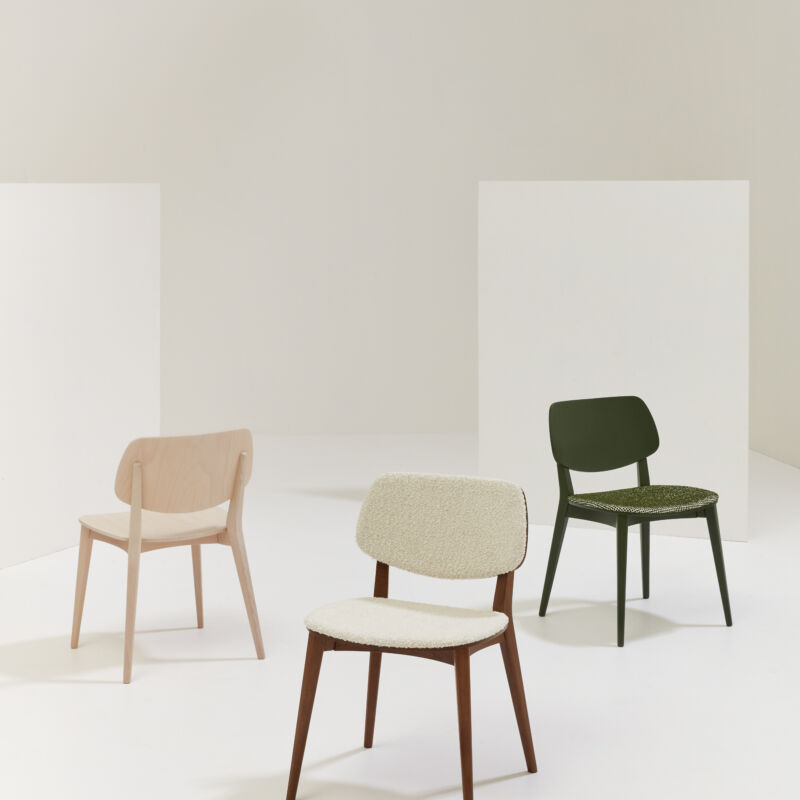 The wooden Doll chair, Emilio Nanni’s first commissioned design for Billiani, expresses essentiality with grace and softness. This is the result of its slender tapering legs and its curved tresses, which lighten the seat without compromising solidity or comfort. Evolved over time into a complete collection that also includes barstools, arm and lounge chairs, coffee and dining tables, Doll is a real chameleon of a chair, capable of changing style according to any changing context, thanks to the wide range of colourways and upholstery options.