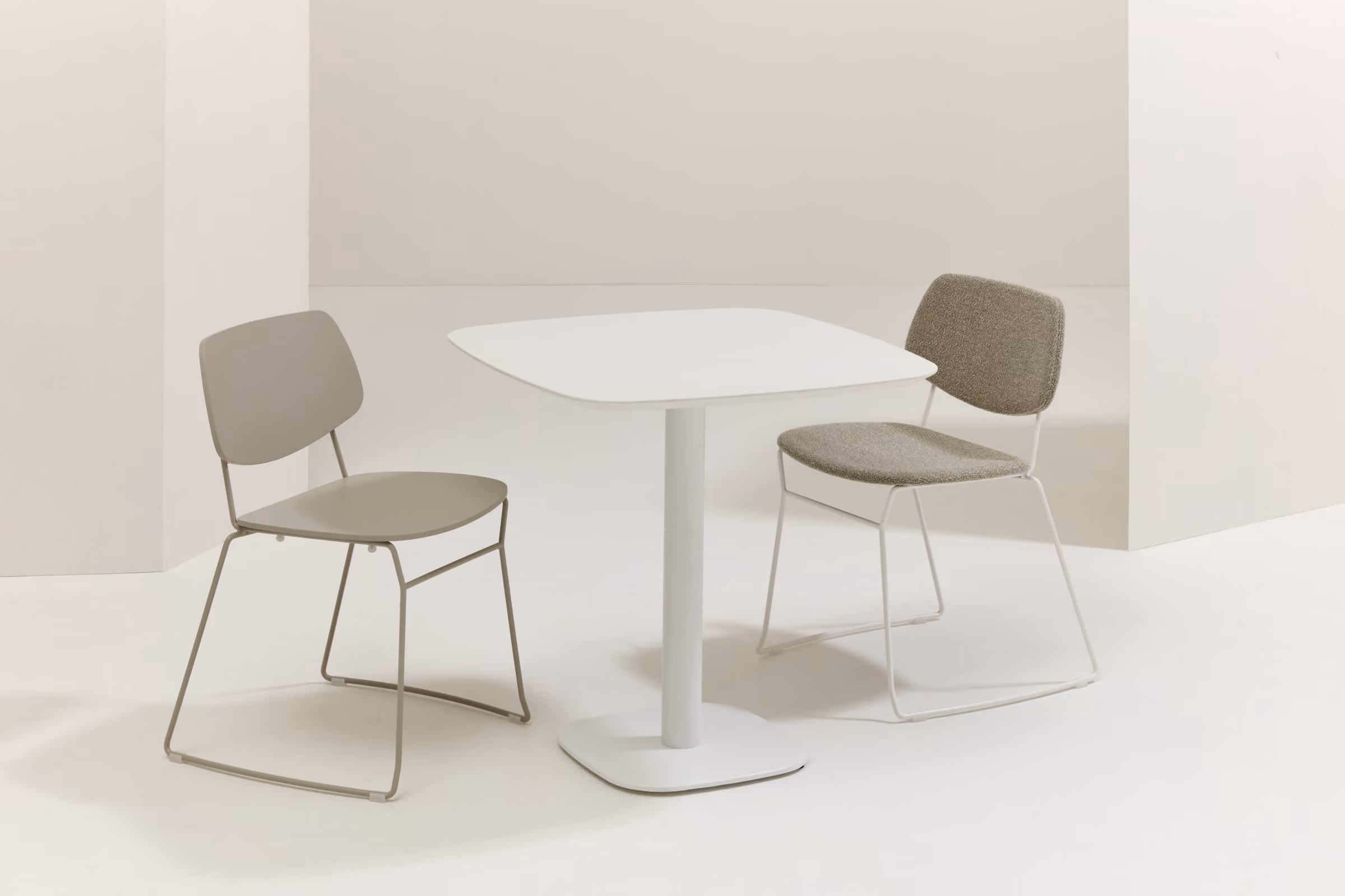 The wooden Doll chair, Emilio Nanni’s first commissioned design for Billiani, expresses essentiality with grace and softness. This is the result of its slender tapering legs and its curved tresses, which lighten the seat without compromising solidity or comfort. Evolved over time into a complete collection that also includes barstools, arm and lounge chairs, coffee and dining tables, Doll is a real chameleon of a chair, capable of changing style according to any changing context, thanks to the wide range of colourways and upholstery options.